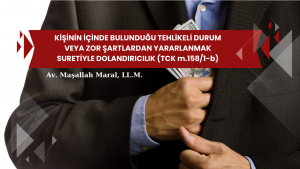 KİŞİNİN İÇİNDE BULUNDUĞU TEHLİKELİ DURUM VEYA ZOR ŞARTLARDAN YARARLANMAK SURETİYLE DOLANDIRICILIK (TCK m.158/1-b)